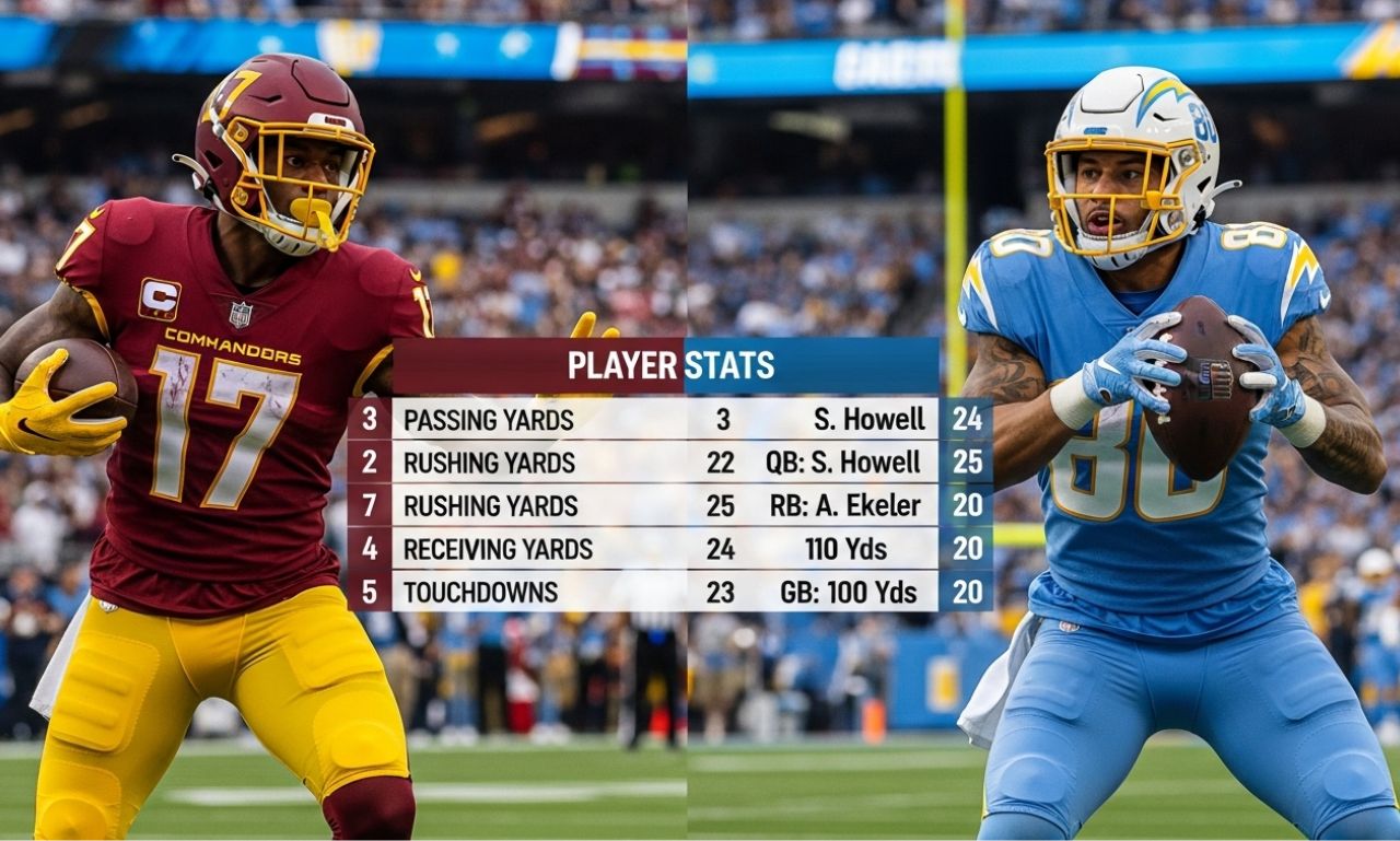 In the recent Washington Commanders vs. Chargers NFL matchup, the Commanders secured a commanding 27‑10 victory over the Los Angeles Chargers on October 5, 2025 at SoFi Stadium in Inglewood, California. This game featured standout performances, a strong defensive effort, and notable contributions from both offenses and defenses. Below we break down the key player stats and game highlights for this memorable matchup. Final Score and Team Overview Washington Commanders: 27 Los Angeles Chargers: 10 Commanders scored 27 unanswered points after giving up the early lead. Washington rallied from a 10‑0 first‑quarter…